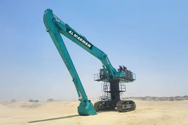 The Kobelco SK850 high bed long reach excavator, equipped with a 22-meter boom and a high-bed cylinder that boosts the body height between 2.5 to 3 meters, is designed for